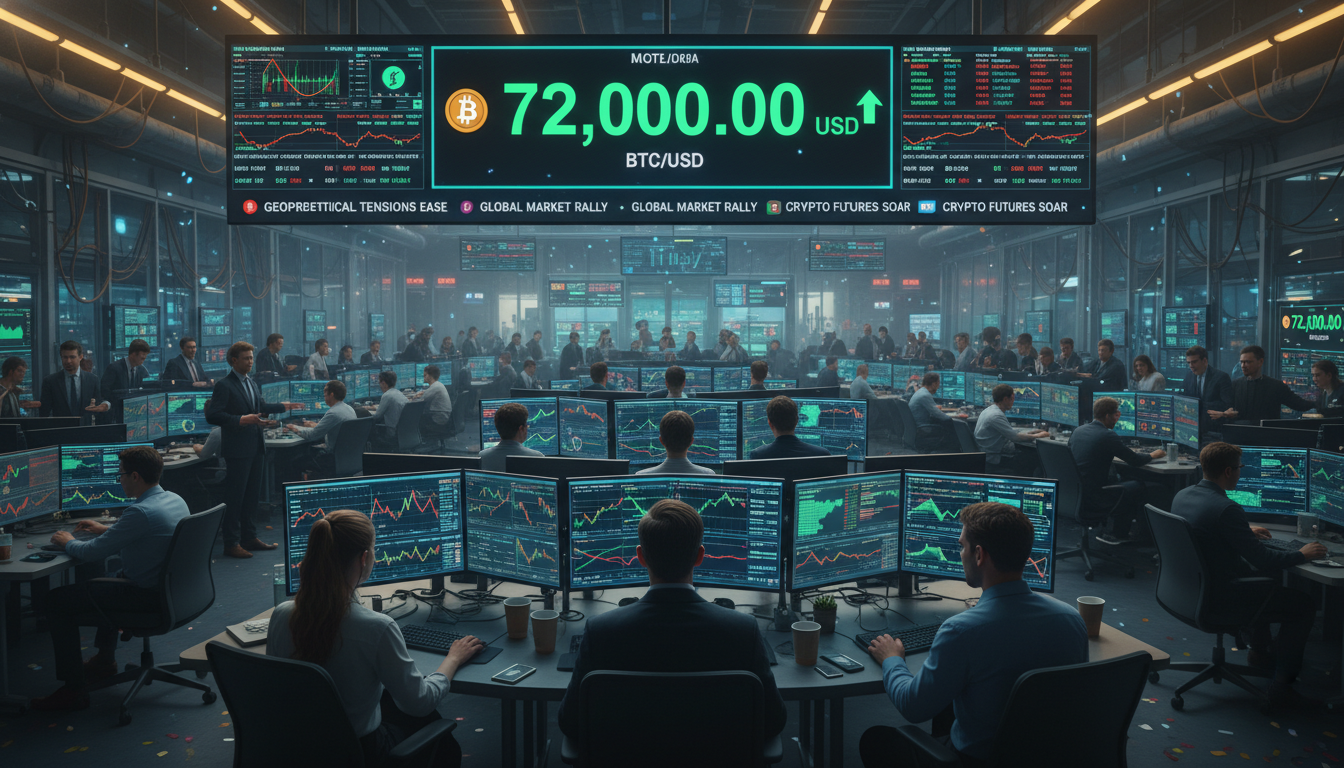 Bitcoin price pushed past $72K as a US-Iran ceasefire steadied risk appetite, fueling a BTC rally and sharpening focus on liquidity and support levels.